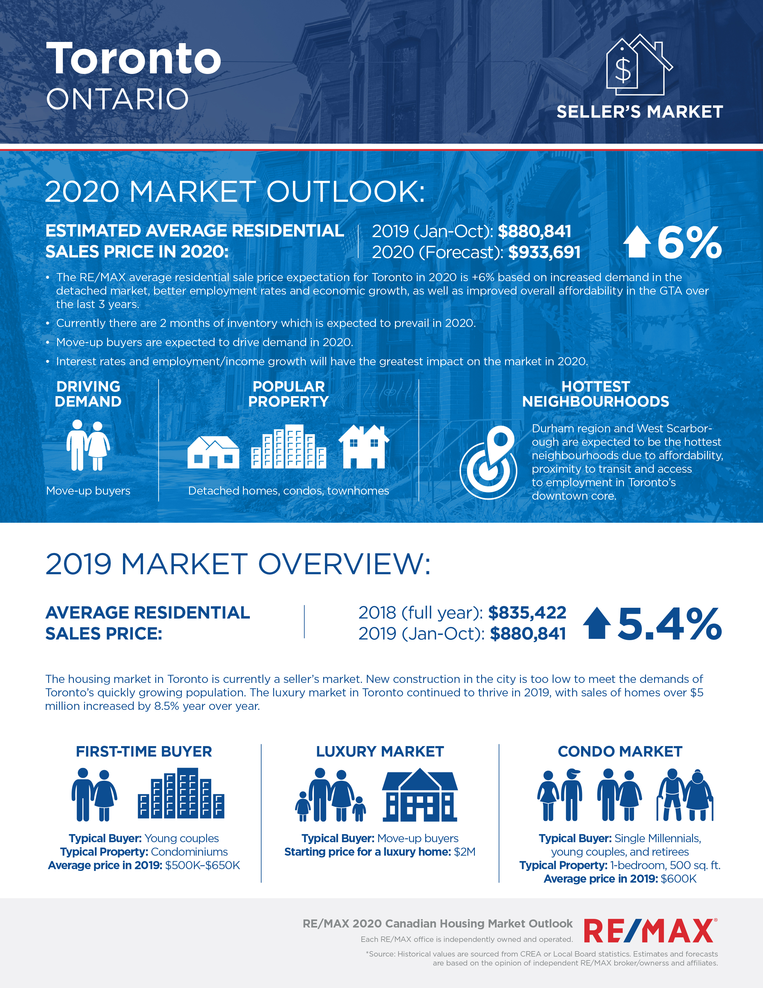 “Southern Ontario is witnessing some incredibly strong price appreciation, with many regions still seeing double-digit gains,” says Christopher Alexander, Executive Vice President and Regional Director, RE/MAX of Ontario-Atlantic Canada. “Thanks to the region’s resilient economy, staggering population growth and relentless development, the 2020 market looks very optimistic.”