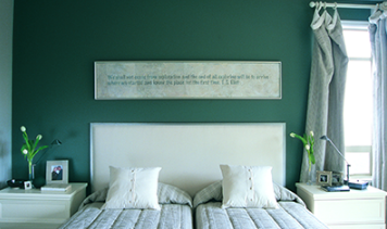 A dark blue-green is a great alternative to the ultra-hip (and somewhat intimidating) black, which will still harness the power of avant-garde palettes. This deep green jewel-toned paint colour for any room in your home gives it an instant air of opulence.