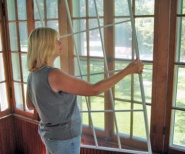 Install storm windows to reduce air leakage year-round. You can find storm windows with vinyl, wood, or aluminum frames and glass or plastic panes. Glass is heavier but longer lasting and clearer than plastic, which scratches easily and yellows over time. Interior storm windows are generally mounted inside the window jambs or flush with the molding. They're easy to install but must be removed when you want to open the windows to let in fresh air. An exterior double-track or triple-track storm window is permanently installed on the outside of the window, and the lower half of the window moves in a separate track from the screen so you can lower or raise it to control air flow.