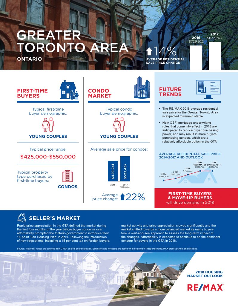 The RE/MAX 2018 average residential sale price expectation for Canada is an increase of 2.5 per cent as the desire for home ownership remains strong, particularly among Canadian millennials.